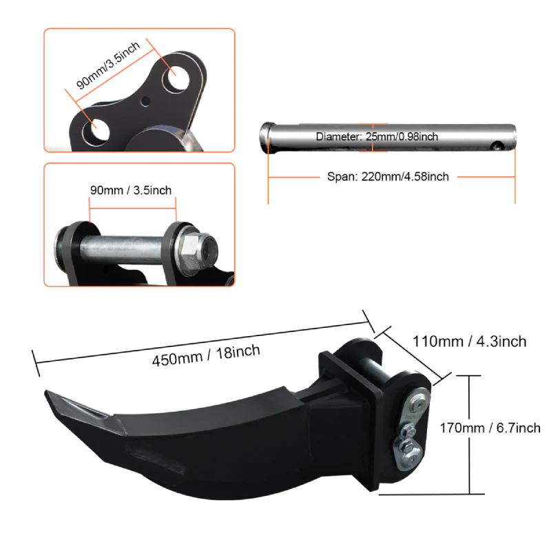 The ripper is an additional tool for mini excavators, mainly used to loosen the soil, break up the tumor surface and repair the soil structure. This tool is very suitable for fields such as agriculture, landscaping, construction and municipal engineering.